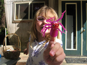 Trinidad, which I'll post about later. We were given complimentary eggs from the owners chickens---little did we know, all the eggs were hard boiled! Did you know you can tell if an egg is hard boiled by spinning it on one of its ends? You really can! The hard boiled egg will keep spinning where as a raw egg just flops out of the spin. We spun eggs, then dyed them. The Easter bunny wrote clues for finding the basket--pretty lame clues that even my granddaughter criticized, but I happen to know that the bunny was a little doubled over with a stomach bug at the time to worry about how crafty the clues were written. The chocolate bunny is still in its box with its ears attached!! Hard to believe, but true!